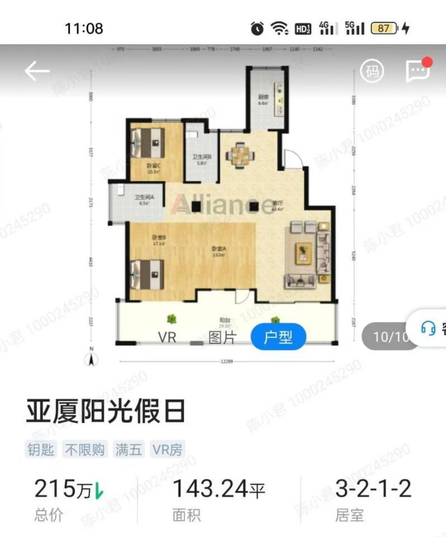 阳光假日全新毛房,143.24平方,三个大阳台都已浇好,从没出租过,小区楼王位置,中上楼层,边套房,实际可使用面积有150-160平方,送附房215万,价格可议,看房有钥匙??13575519607