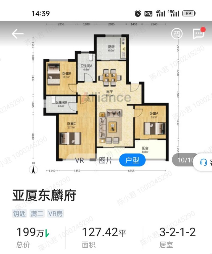 亚厦东麟府,南区中间楼层11楼,精装带中央空调和地暖,阳台已包窗帘已装(价值二万吧),位置很好,127.42平方199万,车位另购,看房有钥匙13575519607